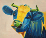 2016Koe in felle kleuren, de lelijke oormerken zijn vervangen door een parel