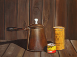 2017Stilleven met doofpot, oud verfblikje en een oud blikje van gestampte muisjes